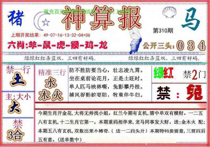 | 314期:百分百论坛连中八期无庄敢接✔ |