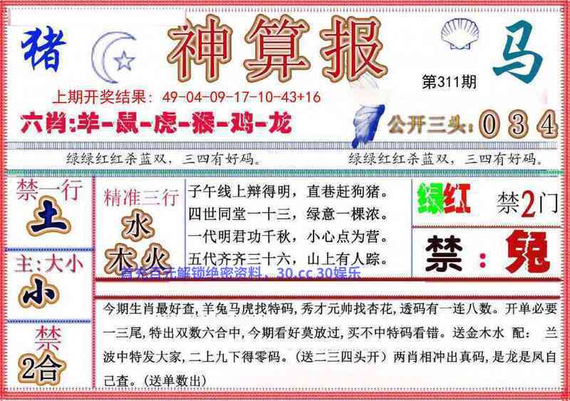 | 314期:直选连肖 | 314期:三肖三码 | 314期:三中三准 |