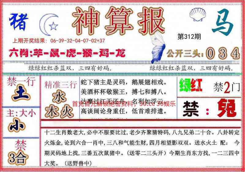 | 314期:七肖【鼠羊猪马牛兔猴】开:發00准 |